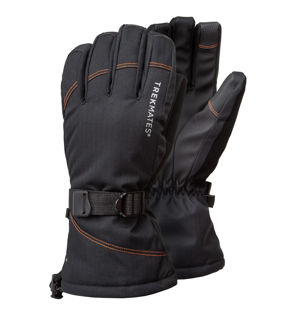 Guantes de hombre cálidos e impermeables para montaña y nieve con tecnología DRY Shield (impermeable y transpirable). Exterior herringbone resistente al agua, aislamiento 140 g/m² en el dorso y 100 g/m² en la palma, forro microfleece y palma de PU robusta. Pantalla táctil, limpia-gafas en el pulgar y ajustes en muñeca y puño. Peso: 150 g.
