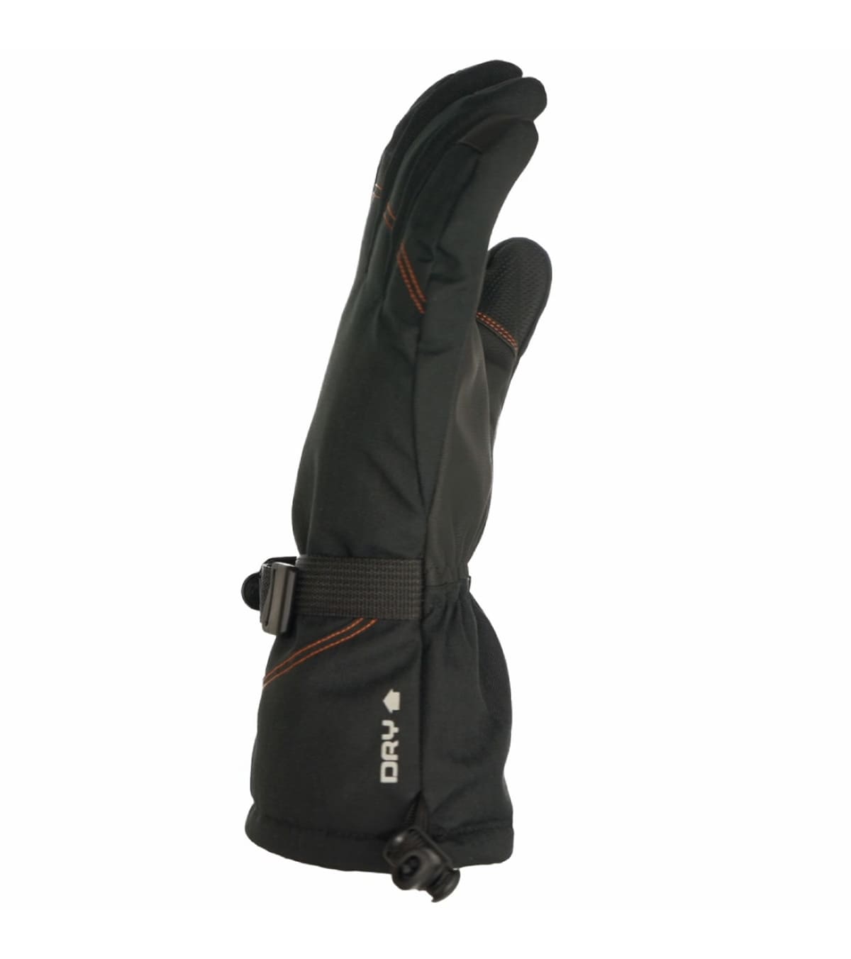 En detalles de ajuste y control, incluye correa de cinchado en muñeca para asegurar el guante y un puño ajustable con cordón que sella bien frente a entradas de aire o nieve. La palma de PU es robusta y aguanta el roce con bastones y material. En el pulgar incorpora un panel tipo limpia-gafas (útil con nieve/humedad) y además es compatible con pantalla táctil. También incorpora tether elástico interno en la muñeca para no perderlos cuando necesitas quitártelos un momento.