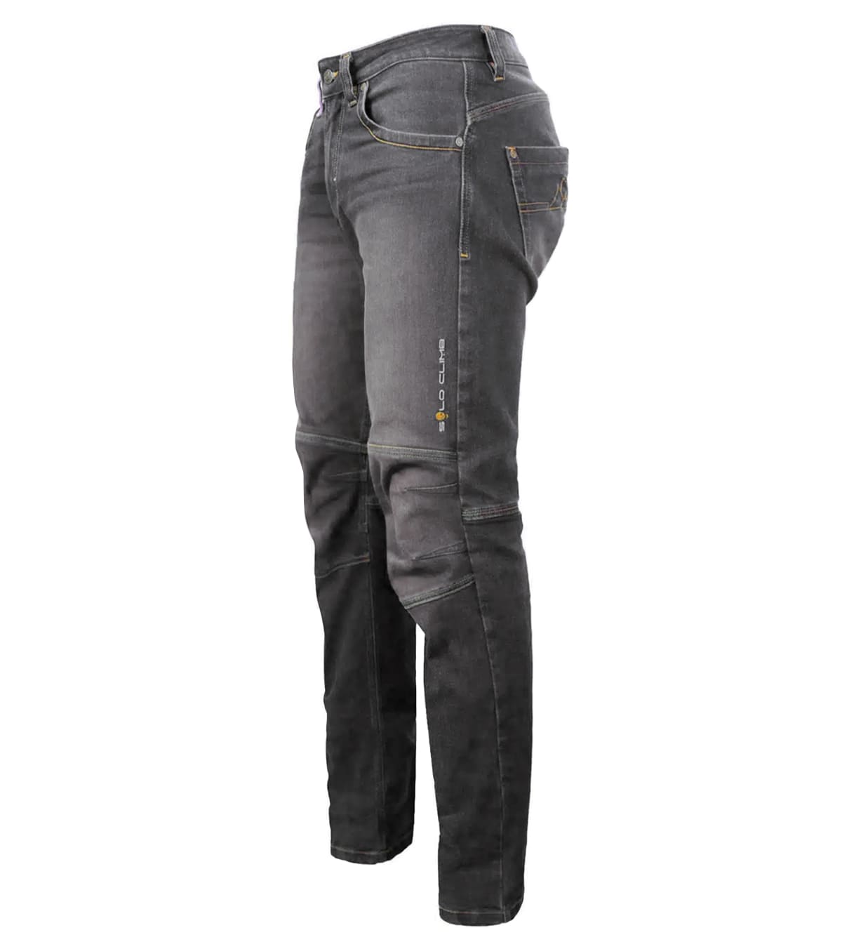 Incluye cinco bolsillos (tres frontales y dos traseros) con remaches metálicos, y el interior de los bolsillos en contacto con el cuerpo es suave. Lleva seis trabillas reforzadas para cinturón; la derecha está realizada en cinta exprés de Dyneema. El cierre es una cremallera metálica YKK.